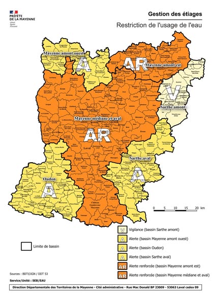 Au regard des faibles précipitations de ces derniers jours, la zone de Lassay ( amont-est de la Mayenne) repasse en alerte renforcée avec les conséquences qui en découlent. AP N 13 300925