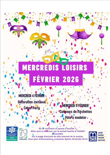 Des manèges seront accessibles aux enfants sur le parking derrière la mairie pendant les vacances de février. En raison de l’installation des manèges, le stationnement sera interdit sur la totalité des places situées sur la gauche du parking de la roseraie (le long du Lassay) du 9 février au 2 mars inclus. Merci de votre …