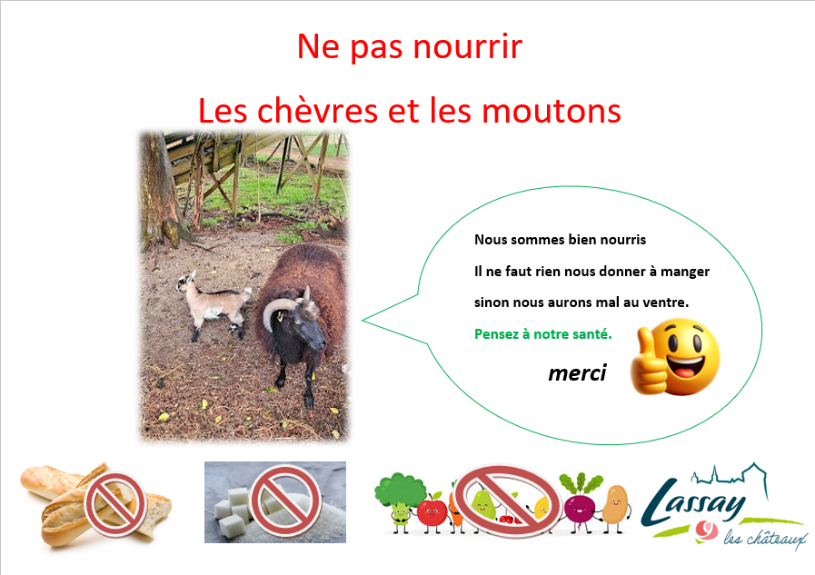 Nous vous rappelons qu’il est interdit de nourrir les moutons et les chèvres qui résident près de l’EHPAD des Tilleuls. Merci de votre compréhension.